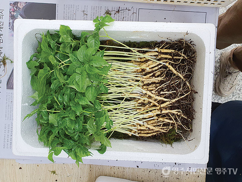 “영주는 새싹삼이 후발주자라기보다는 아직까지 알려지지 않은 곳이에요. 농촌진흥청에서는 새싹삼의 효능에 대해 많이 알려져 있죠. 새싹삼이 좋다는 것, 특히 잎에 사포닌 성분이 많다고 홍보를 하는데 제가 볼 때는 새싹삼과 큰 인삼이 가진 각각의 장점이 있다고 생각해요”