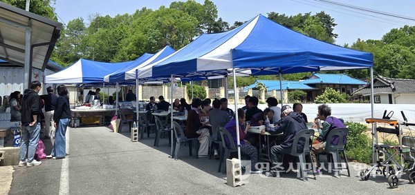 영주시 하망동 9통 용암대마을회(회장 우혜경)가 지난 8일 어버이날을 맞아 ‘어버이날 기념 화합잔치’를 열고 이웃과 따뜻한 정을 나눴다.