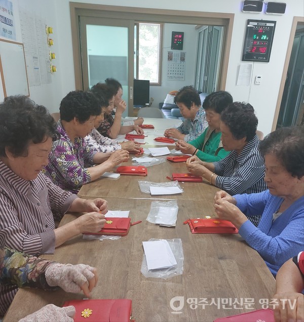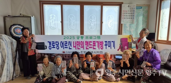 대한노인회 영주시지회(지회장 권영창)가 5월부터 6월까지 두 달간 관내 경로당 300여 곳에서 ‘나만의 핸드폰 가방 꾸미기’ 프로그램을 운영하고 있다.