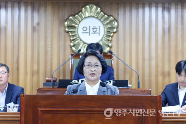 영주시의회 김정숙 의원(국민의힘, 비례대표)이 생리용품을 둘러싼 지역 청소년들의 불평등 문제를 조명하고, 보편적인 생리용품 지원 정책을 마련해야 한다고 강조했다.