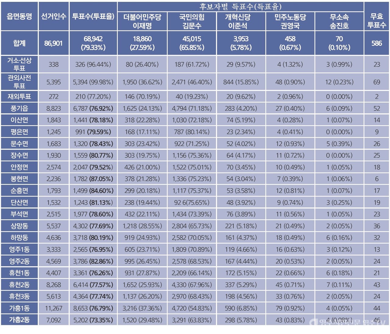 ■ 21대 대선, 영주지역 읍면동별·후보자별 득표 분석 해보니