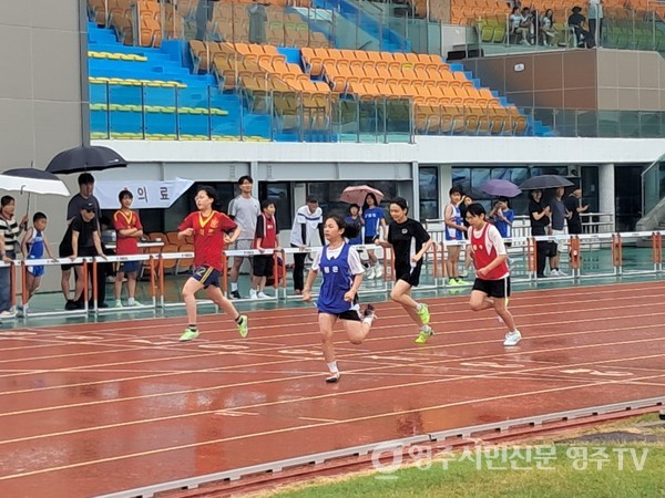 영주교육지원청(교육장 박종진)이 16일 오전 9시, 영주시민운동장에서 ‘제27회 교육장기 초‧중 육상경기대회’를 열었다. 이날 대회에는 관내 26개 초‧중학교에서 391명의 학생선수가 참가했다.