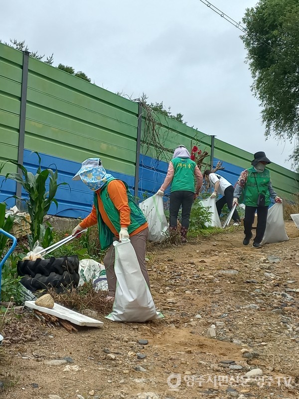 현장에는 부녀회원 10여 명이 참여해 낚시객이 자주 찾는 영주댐 주변과 주요 도로변의 쓰레기를 수거하고 주변 정리에 구슬땀을 흘렸다. 특히 영주댐 일대에는 무단 투기된 생활쓰레기가 다수 발견돼 집중적인 정화작업이 이뤄졌다.