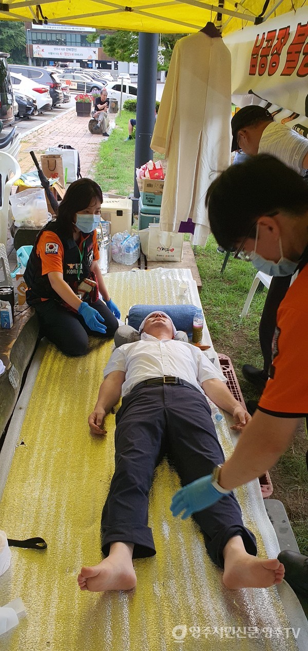 윤 목사의 탈진에도 불구하고 함께 단식에 나선 성민교회 호대원 목사와 성공회영주교회 천제욱 신부, 영주시민연대 이화숙 공동대표, 일반시민들은 간이 천막 하나에 의지한 채 연일 계속되는 폭염 속에서 단식을 이어가고 있다.
