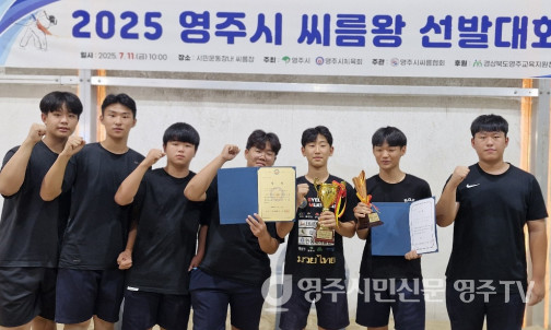 영광중학교(교장 서원달)가 11일 영주시민운동장 내 씨름경기장에서 열린 2025년 영주시 씨름왕 선발대회 중등부 단체전에서 우승을 차지했다.