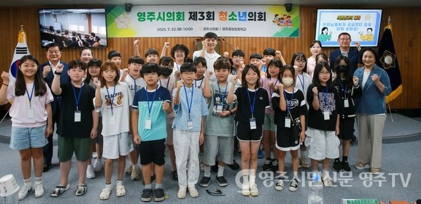 영주시의회(의장 김병기)가 지난 22일 본회의장에서 제3회 청소년의회를 열었다. 이날 행사에는 중앙초 학생 25명과 인솔교사 1명이 참여해 의회 운영 전 과정을 직접 체험했다.