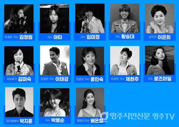 영주시가 주최하고, (재)영주문화관광재단이 주관하며, (사)영주시관광협의회가 후원하는 이번 음악회는 전국에서 활동 중인 영주 출신 예술인들이 대거 고향을 찾는 무대로, 가수·시낭송가·성악가 등 총 13개 팀이 출연해 감동의 무대를 선보인다.