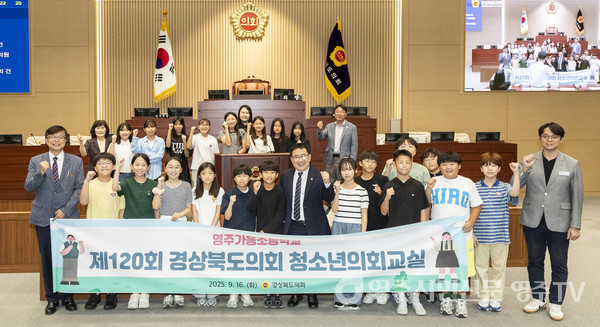 경상북도의회가 16일 본회의장에서 영주 가흥초등학교 학생 22명이 참여한 가운데 ‘제120회 경상북도의회 청소년의회교실’을 열었다.