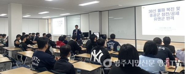경북전문대학교(총장 최재혁) 제301학생군사교육단(단장 진연수)이 15일 학군단 통합강의실에서 ‘호국 역사와 통일 안보 특강’ 네 번째 강연을 가졌다.