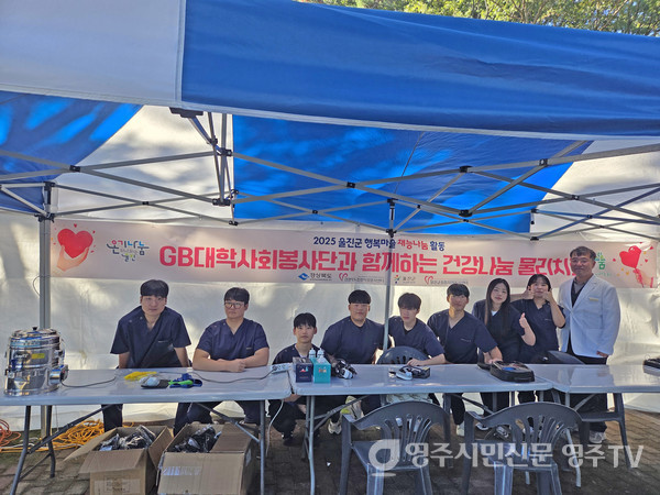 경북전문대학교(총장 최재혁) GB대학사회봉사단이 27일 울진군 후포면 금음솔밭에서 열린 ‘울진군 행복마을 재능나눔 프로그램’에 참여해 전공과 연계한 봉사활동을 펼쳤다.