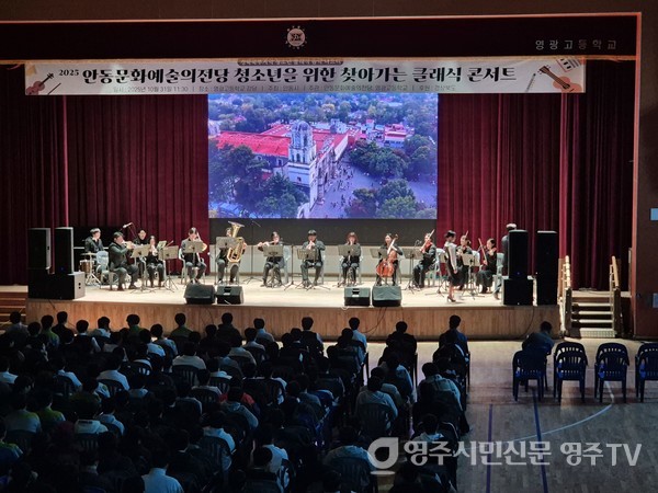 영광고등학교(교장 오성우)가 지난달 31일 교내 비호관에서 1학년과 2학년 학생들을 대상으로 ‘청소년을 위한 찾아가는 클래식 콘서트’를 열어 호응을 얻었다.