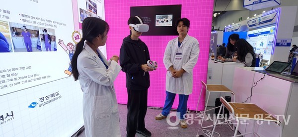 경북전문대는 전시관에서 ▲핵심 간호술 VR 체험 ▲맞춤형 자동 관절가동범위(ROM) 측정 체험 등 실무 교육 기반 프로그램을 운영했다. 특히 2025 캡스톤디자인 경진대회에서 우수상을 받은 물리치료과의 ‘맞춤형 자동 ROM 측정장치’가 큰 주목을 받았다.