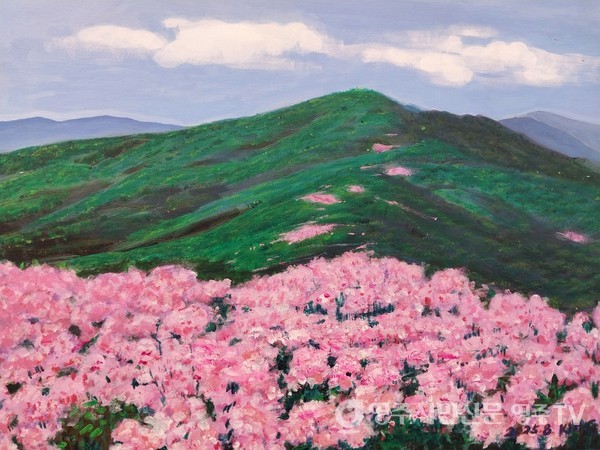 ‘소백산의 봄’을 출품한 김극동 회원은 “아크릴화는 색감이 선명하고 최근에는 36색 구성으로 다양한 표현이 가능해졌다”며 “섞는 번거로움 없이 바로 쓸 수 있어 편리하다”고 말했다.