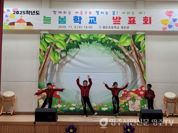 영주 평은초등학교(교장 임명순)가 지난 5일 교내 강당에서 전교생이 참여한 가운데 ‘꿈과 끼를 펼치는 학예회’를 성황리에 열었다.