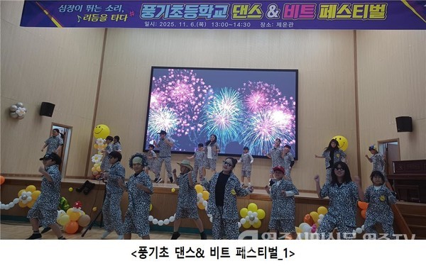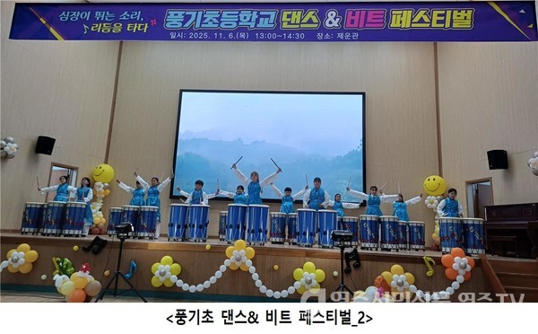 풍기초등학교(교장 박세락)가 지난 6일 학교 체육관에서 ‘심장이 뛰는 소리, 리듬을 타다’를 주제로 댄스&비트 페스티벌을 열었다.