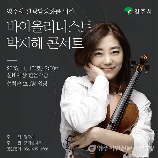 영주시가 오는 15일 오후 3시 선비세상 한음악당에서 세계적 바이올리니스트 박지혜 초청 콘서트를 연다.