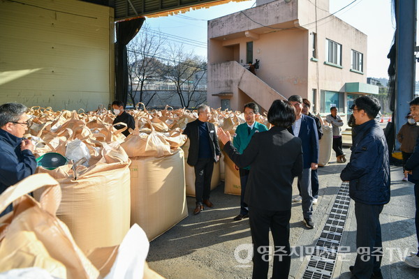매입 첫날, 유정근 영주시장 권한대행은 영주연합농협 미곡처리장 수매 현장을 찾아 농업인과 관계자들을 격려하고, 현장의 다양한 의견을 청취했다.