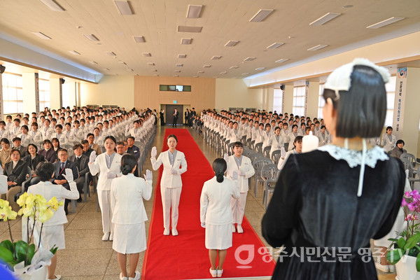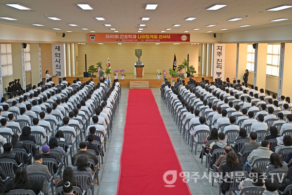 경북전문대학교(총장 최재혁) 간호학과가 지난 14일 인문사회2관 대강당에서 제40회 나이팅게일 선서식을 열었다.