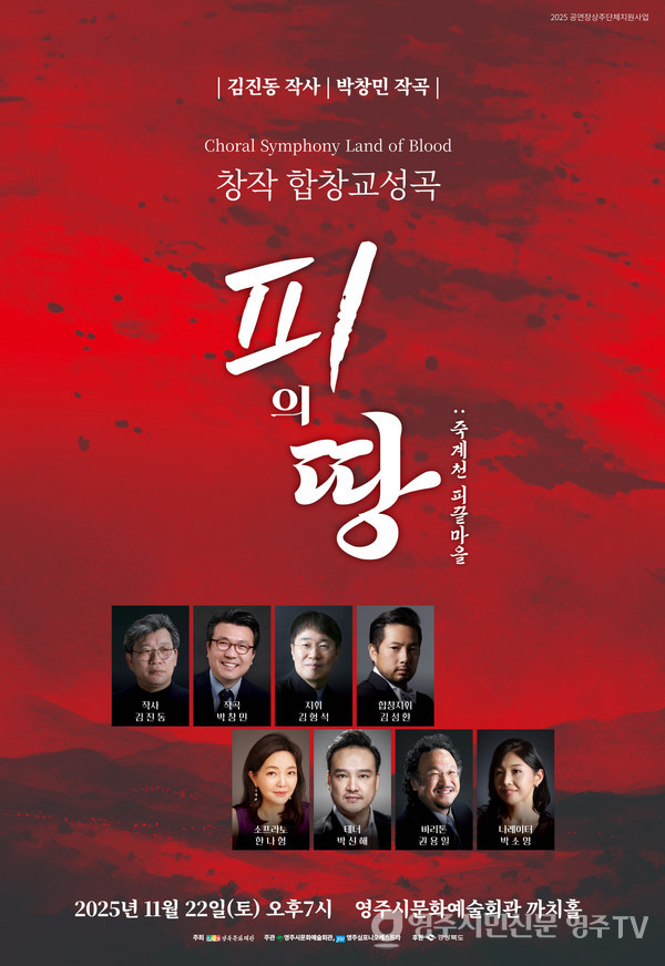 창작 합창교성곡 ‘피의 땅(죽계천 피끝마을)’이 오는 22일 오후 7시 영주시문화예술회관 까치홀 무대에 오른다. 이번 공연은 경북도와 경북문화재단이 후원하고, 영주시문화예술회관과 영주심포니오케스트라가 공동 주관한다.
