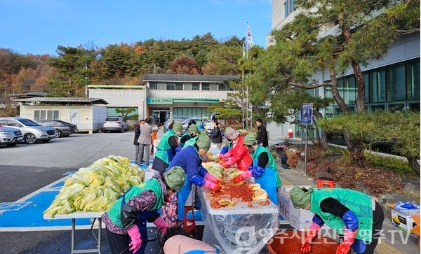 영주시 문수면 새마을협의회와 부녀회(협의회장 서정근, 부녀회장 임준자)가 17일 문수면 행정복지센터에서 ‘사랑의 김장 나눔’ 행사를 열었다.