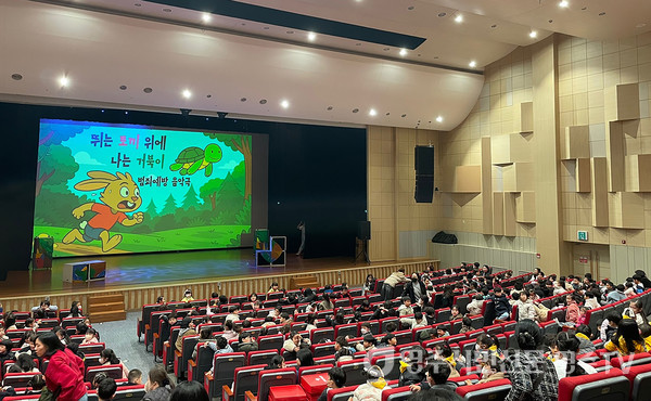 영주청년회의소(회장 오성호)가 20일 영주문화예술회관 까치홀에서 어린이 범죄예방 뮤지컬 ‘뛰는 토끼 위에 나는 거북이’를 열었다. 공연은 오전과 오후 두 차례 진행됐으며, 지역 어린이집과 유치원 원아 900여 명이 관람했다.