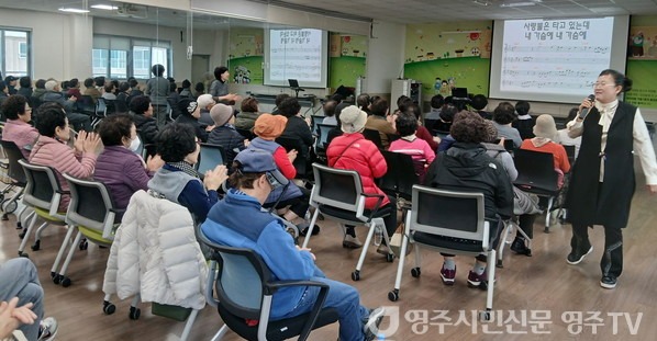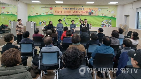 영주시 가흥1동 지역사회보장협의체(위원장 권서영)가 20일 가흥1동 행정복지센터 2층 다목적실에서 ‘신바람 흥바람 가흥노래교실’을 열어 지역 어르신들에게 즐거운 여가시간을 선사했다.