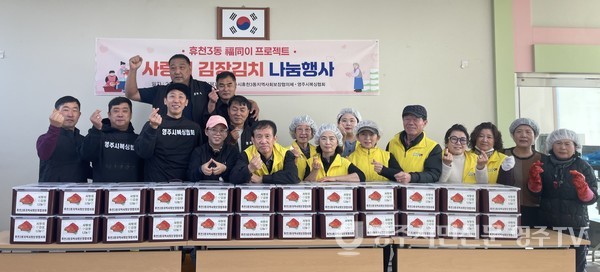 영주시 휴천3동 지역사회보장협의체가 20일 ‘사랑의 김장김치 나눔 행사’를 열고 정성껏 담근 김치를 도움이 필요한 50가구에 전달했다.