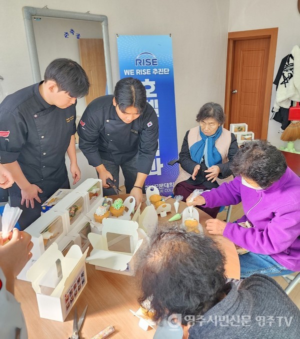 이날 행사에는 물리치료과, 뷰티케어과, 호텔외식과 학생들이 참여해 다양한 문화 체험을 운영했다. 물리치료과는 근육 강화와 전신 스트레칭 프로그램을 통해 어르신들의 신체 긴장을 완화하고 건강한 생활습관을 유도했다. 뷰티케어과는 네일아트 체험을 제공해 맞춤형 서비스를 선보였고, 호텔외식과는 크리스마스 컵케이크 꾸미기 활동을 통해 창의적인 즐거움을 더했다.