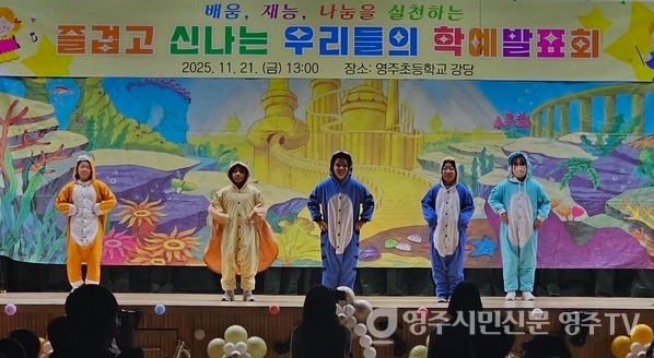 영주초등학교(교장 류동희)가 지난 21일 학교 강당에서 전교생이 참여하는 학예발표회를 열고 끼와 재능을 마음껏 펼쳤다.