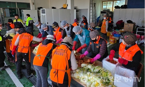 영주소방서(서장 김두진)는 풍기여성의용소방대가 22일 오전 9시 풍기119안전센터에서 ‘사랑 담은 김장김치 나눔 행사’를 열었다고 밝혔다.