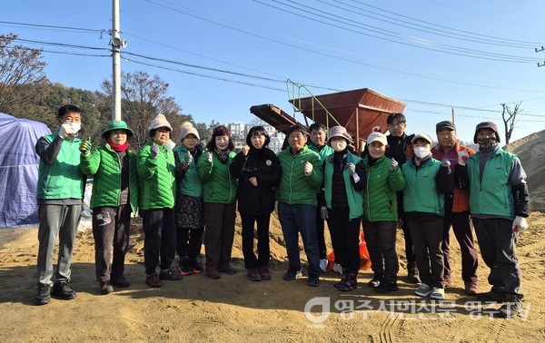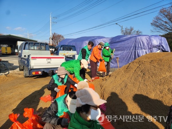영주시 하망동(동장 박미선)이 지난 22일 겨울철 한파와 강설로 인한 미끄럼 사고를 예방하기 위해 지역자율방재단과 함께 빙방사 300여 개를 제작해 배치했다.