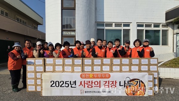 영주시 봉현면 지역사회보장협의체(공동위원장 황운호·장성희)가 24일 봉현면행정복지센터에서 ‘사랑의 김장김치 나누기’ 행사를 열고, 직접 담근 김장김치 300포기를 관내 취약가구 100세대에 전달했다.