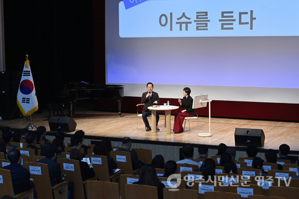 이날 ‘이슈톡’ 순서에서는 학생과 학부모가 교육감에게 직접 질문을 던졌다. 봉성초 한 학생은 마을 연계 예술교육 프로그램인 ‘우리동네 예술학교’의 지속 가능성과 지원 확대를 요청했다. 춘양중과 한국산림과학고 학교운영위원장은 체육관 시설 부족과 문화재 보호구역 내 교육공간 제약 문제 해결을 건의했다.