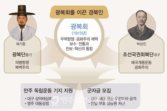 이후 풍기광복단은 대구의 조선국권회복단과 합류하면서 대한광복회로 재편되었고, 그 활동 범위는 만주로까지 이어진다.